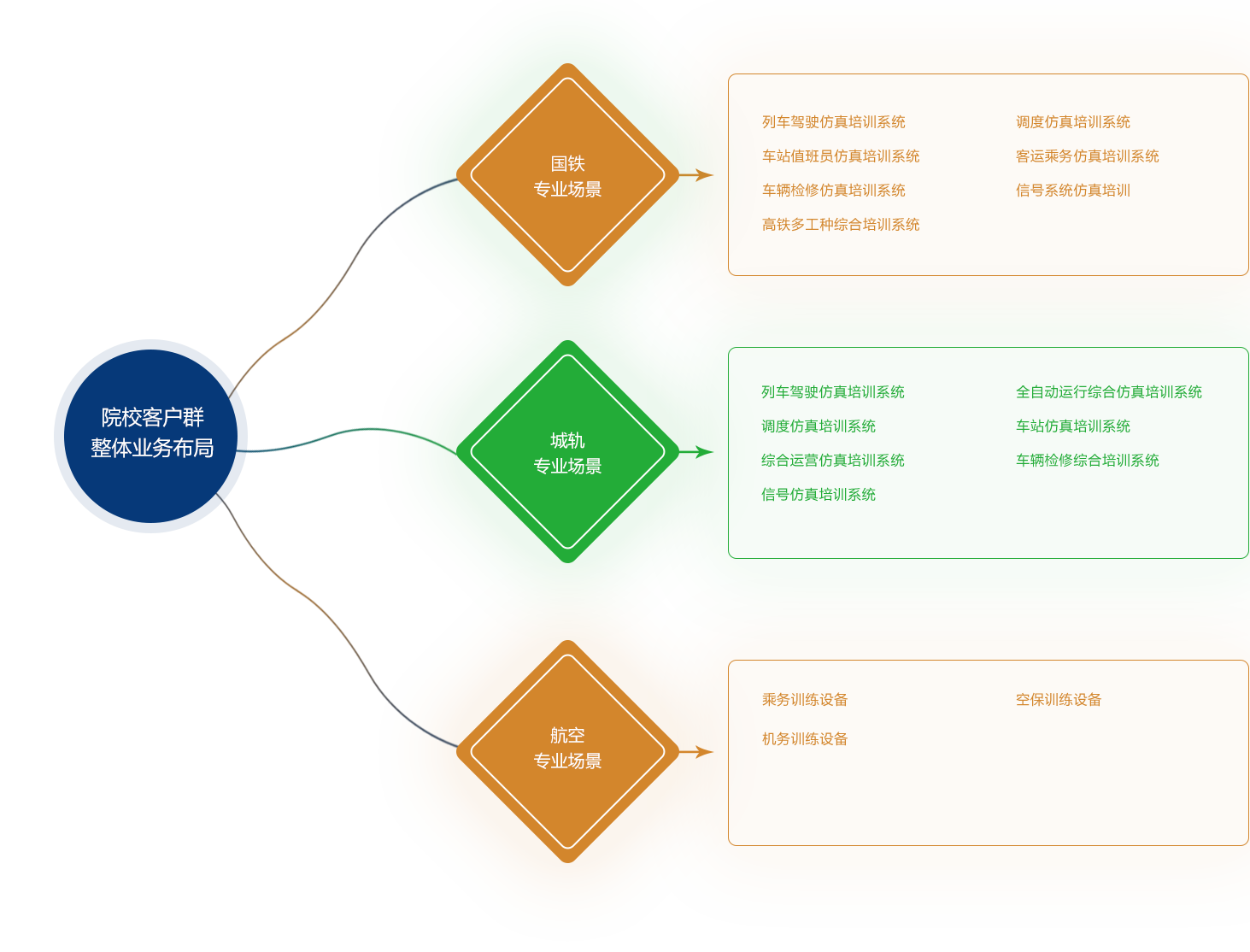 在院校仿真培訓(xùn)領(lǐng)域,運(yùn)達(dá)公司借助強(qiáng)大的西南交通大學(xué)國家重點(diǎn)實(shí)驗(yàn)室的技術(shù)背景和資源,以多專業(yè)聯(lián)合的方式共同支撐院校進(jìn)行專業(yè)建設(shè)、師資力量提升、實(shí)訓(xùn)中心建設(shè)。運(yùn)達(dá)公司緊密跟進(jìn)國家號召和政策要求,參與1+X相關(guān)標(biāo)準(zhǔn)制定,積極聯(lián)合院校進(jìn)行產(chǎn)教融合與專業(yè)共建,力圖與院校一起改善教學(xué)環(huán)境、提高教學(xué)質(zhì)量、優(yōu)化就業(yè)渠道、強(qiáng)健學(xué)生素質(zhì),從而培養(yǎng)更多更好的專業(yè)技能型人才。同時,運(yùn)達(dá)公司還積極尋求與院校的合作,合作內(nèi)容包括但不限于課程資源共建與出版發(fā)行、科研項(xiàng)目共同研發(fā)與橫向落地,舉辦區(qū)域性專業(yè)競賽等。