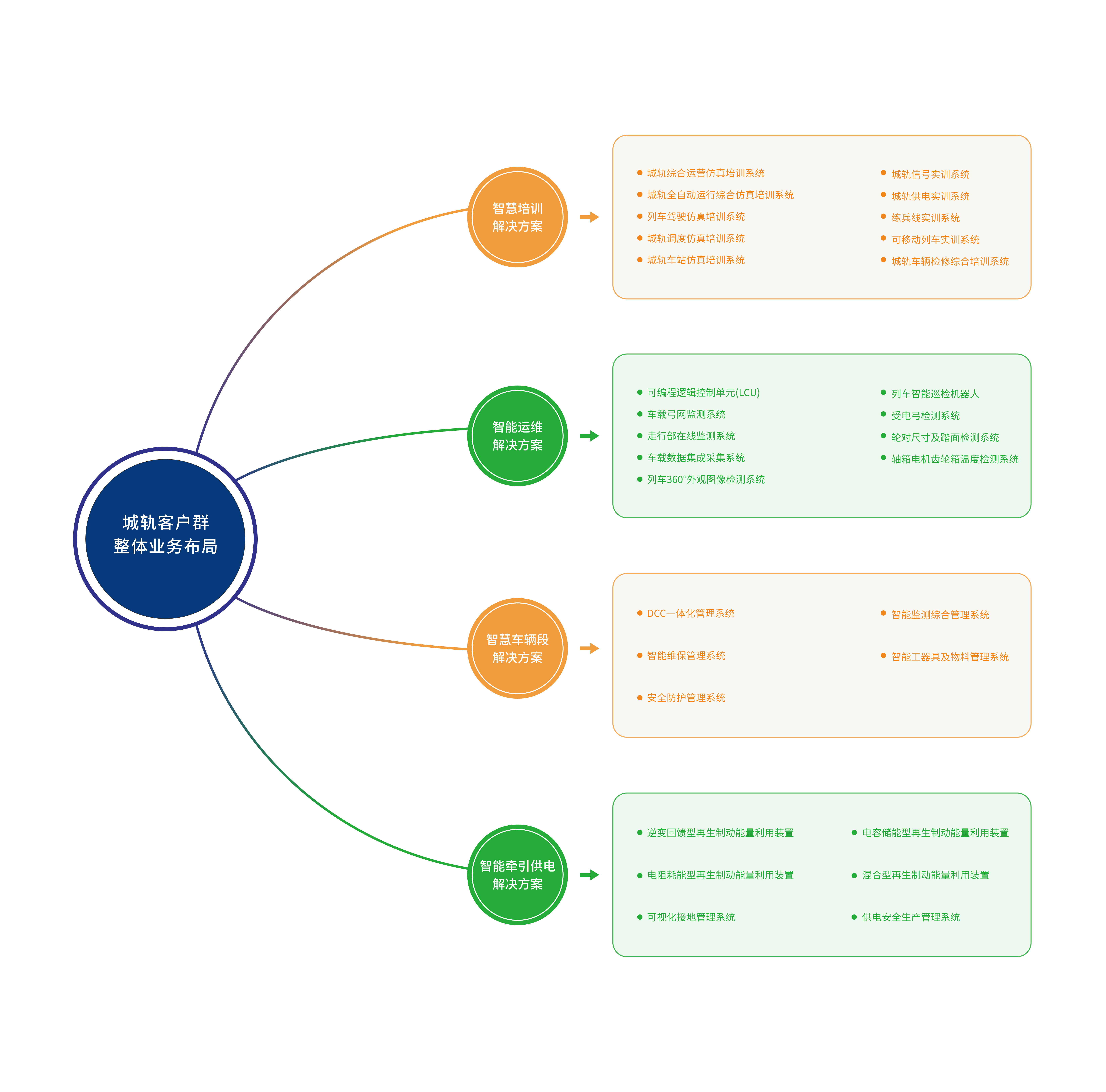 在城市軌道交通領(lǐng)域,針對(duì)培訓(xùn)、車輛、車輛段、牽引供電業(yè)務(wù)場景,運(yùn)達(dá)可提供智慧培訓(xùn)、智能運(yùn)維、智慧車輛段、智能牽引供電4大解決方案。四大解決方案分別包括N個(gè)核心子產(chǎn)品及相關(guān)服務(wù)。