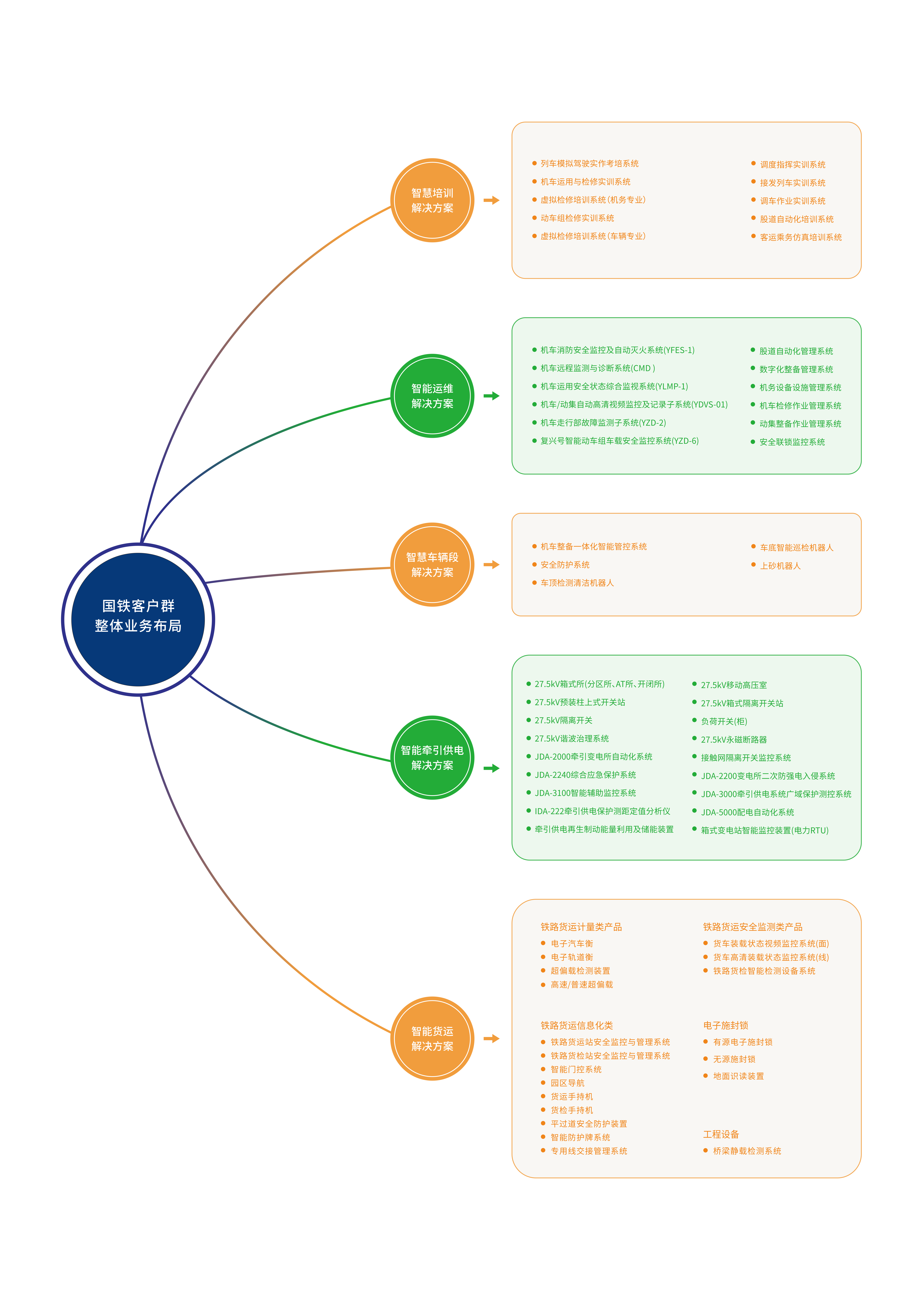 在鐵路機(jī)車(chē)車(chē)輛領(lǐng)域,針對(duì)培訓(xùn)、機(jī)輛、牽引供電、貨運(yùn)物流等業(yè)務(wù)場(chǎng)景,運(yùn)達(dá)可提供智慧培訓(xùn)、智能運(yùn)維、智慧車(chē)輛段、智能牽引供電、智能貨運(yùn)五大解決方案。五大解決方案分別包括n個(gè)核心子產(chǎn)品及相關(guān)服務(wù)。